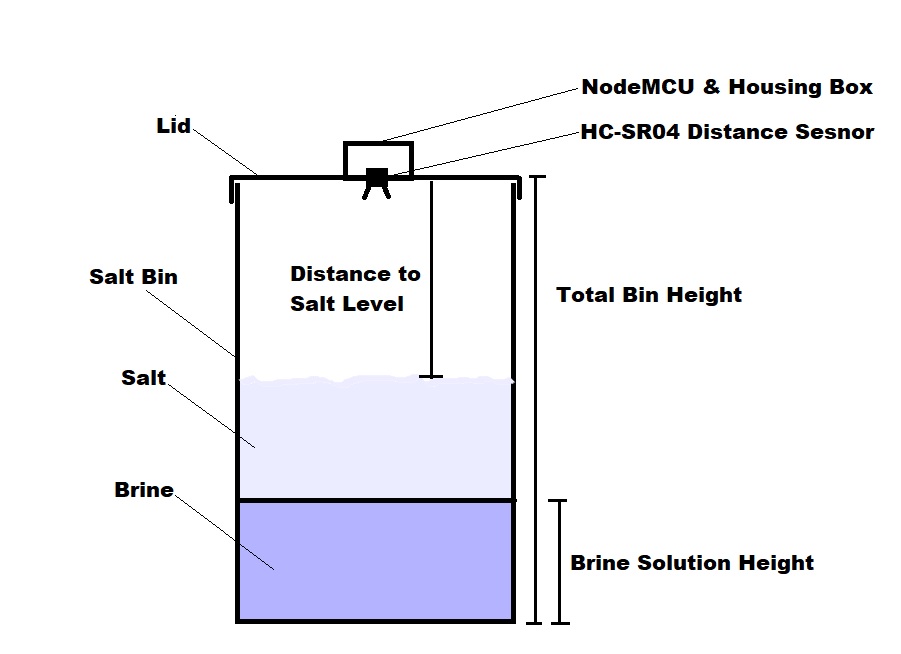 Salt Height = Total Bin Height – Distance from Top to Salt Level Surface
